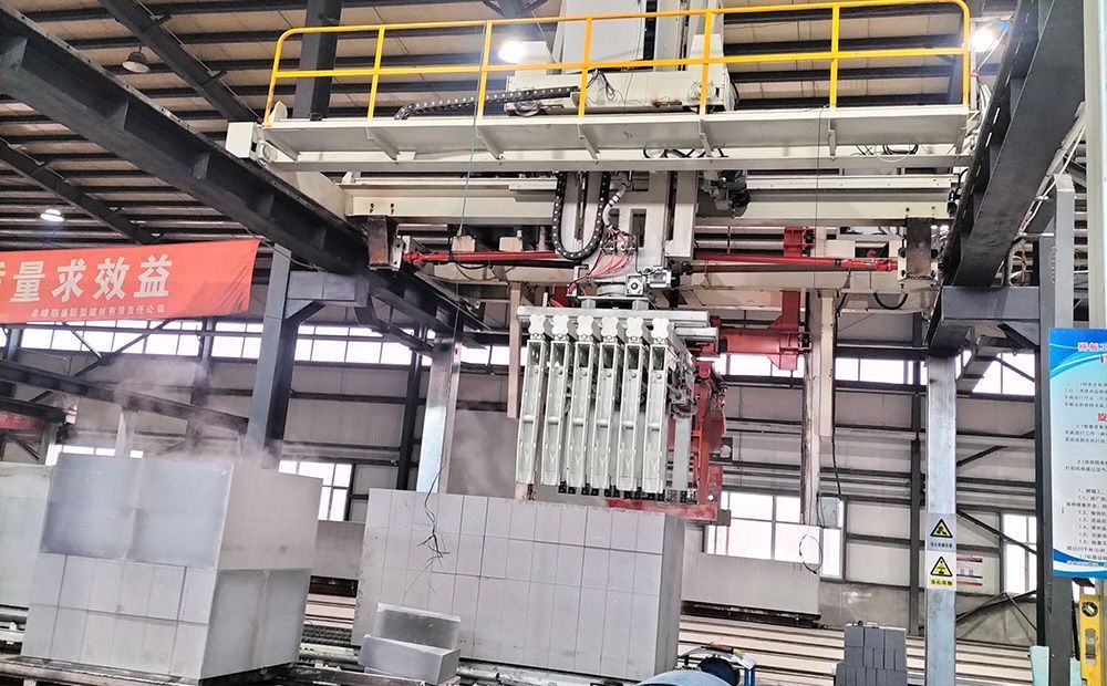 内蒙古赤峰,一家加气砖生产企业的车间里,由青州市双丰达机械工程有限公司提供的无托盘打包线已顺利投入生产。
